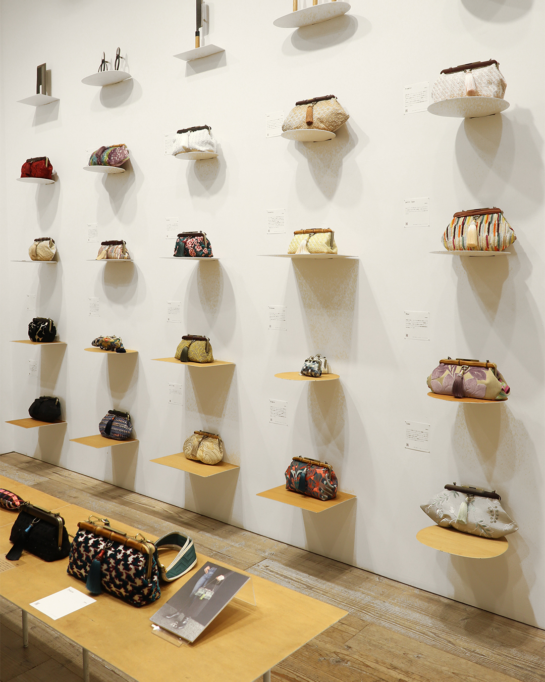 職人の手による商品が持っている個性を生かすために、できるだけ棚の存在感を小さくするように設計しています。具体的には商品一つ一つに合わせた形状の小さい棚をつくり、その棚を商品の陳列に合わせて壁に差し換える計画としています。